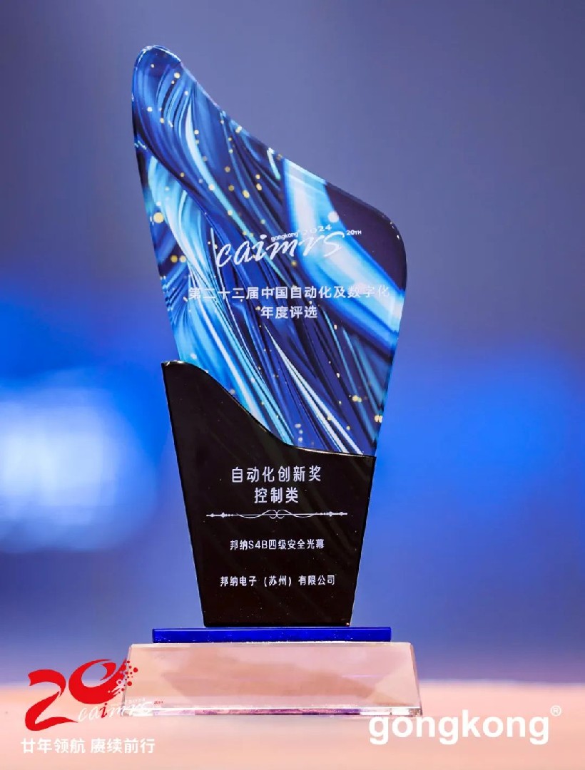 在自动化技术的推动下,工业正在朝着数字化、智能化、网络化与综合集成化的方向快速发展,制造业工厂不断朝着高度一体化、集成化的进程前行。自动化创新已经成为推动新的技术革命和新的产业革命的核心,邦纳持续助力企业加速自动化转型升级。本次评选中,邦纳S4B四级安全光幕获得自动化创新奖——控制类:
